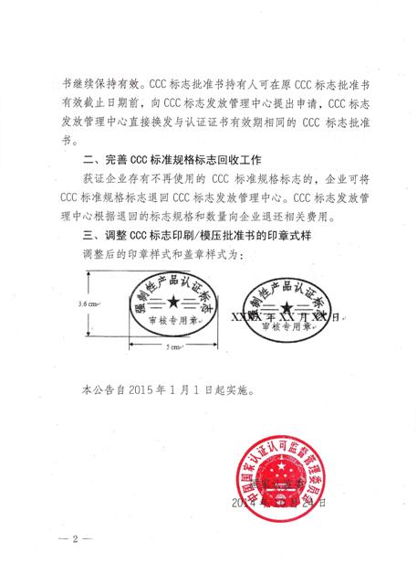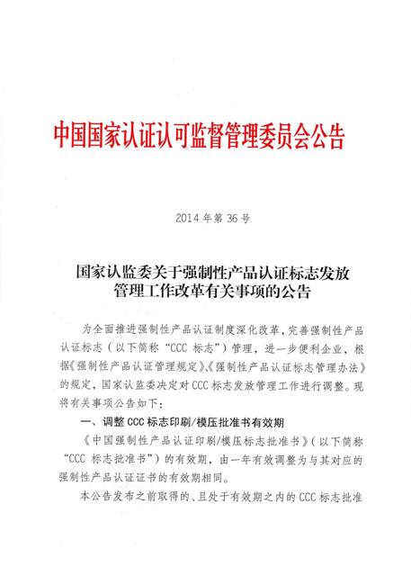 國(guó)家認(rèn)監(jiān)委為全面推進(jìn)強(qiáng)制性產(chǎn)品認(rèn)證制度深化改革,完善強(qiáng)制性產(chǎn)品認(rèn)證標(biāo)志(以下簡(jiǎn)稱“CCC標(biāo)志”)管理,進(jìn)一步便利企業(yè),決定對(duì)CCC標(biāo)志發(fā)放管理工作進(jìn)行調(diào)整。將調(diào)整CCC標(biāo)志印刷/模壓批準(zhǔn)書有效期,完善CCC標(biāo)準(zhǔn)規(guī)格標(biāo)志回收工作。