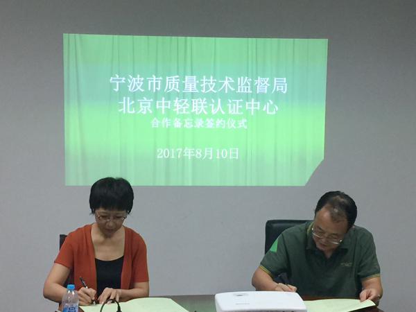 中心與寧波市質量技術監督局簽署認證合作備忘錄