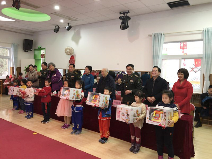 ? ? ? ?在幼兒園,中國(guó)關(guān)心下一代委員會(huì)、中國(guó)下一代教育基金會(huì)、北京中輕聯(lián)認(rèn)證中心及相關(guān)單位一行親切地和孩子們交流,親手給小朋友們送上節(jié)目禮物,祝他們新春快樂、天天進(jìn)步、快樂成長(zhǎng)。小朋友也贈(zèng)送了手工作品并呈現(xiàn)了精彩的演出。