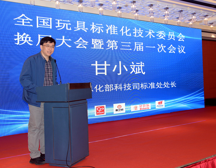國家市場監督管理總局標準技術管理司陳洪俊副司長也充分肯定了玩具標準化工作取得的優異成績,尤其是國際化標準的突破,并深入闡述了標準化工作的科學管理;工業和信息化部科技司標準處甘小斌處長從標準化改革、認識、目標等角度闡述了市場化、國際化的重大意義;中國輕工業聯合會綜合業務部王旭華副主任分享了輕工標準化成果,并提出了輕工行業高質量發展方向;寧波是我國玩具及嬰童用品的主要產區之一,擁有著眾多的優秀企業和廣闊市場,寧波市地方政府對本次換屆大會非常重視,寧波市市場監督管理局李國宏副局長在會上就當地標準化工作進行了介紹,提出未來高質量發展方向。作為本次換屆大會的承辦單位,寧波市玩具和嬰童用品行業協會葉偉德會長,以及企業代表寧波貝貝樂兒童用品有限公司樂明董事長分別致詞,預祝玩具標委會換屆大會成功召開。